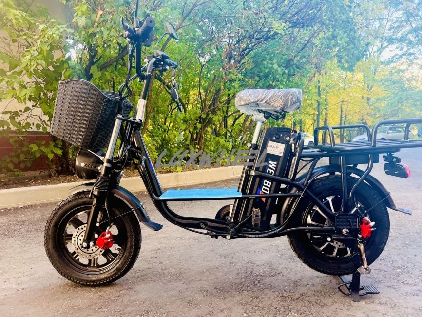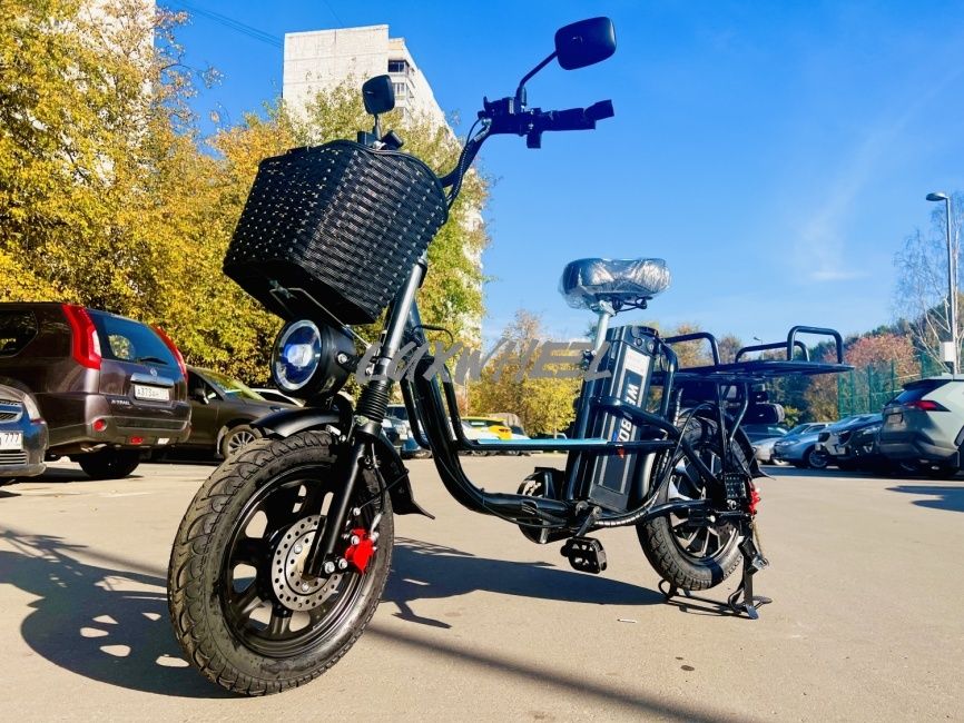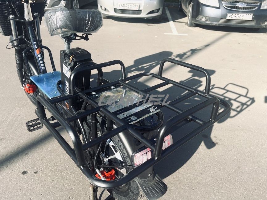 Электровелосипед wenbox Monster лайт оснащен багажником сзади и корзиной спереди, что делает его еще более практичным и удобным для перевозки грузов и покупок.